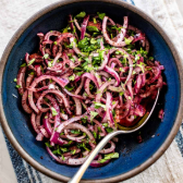 Sumac Onions Cebollas con zumaque: frescas, ácidas y llenas de carácter Introducción Las Sumac Onions, o cebollas con zumaque, son una preparación sencilla pero profundamente sabrosa, muy común en la cocina de Medio Oriente, Turquía y el Levante. Se sirven tradicionalmente junto a carnes a la parrilla, kebabs, shawarma, falafel o dentro de panes planos […]
