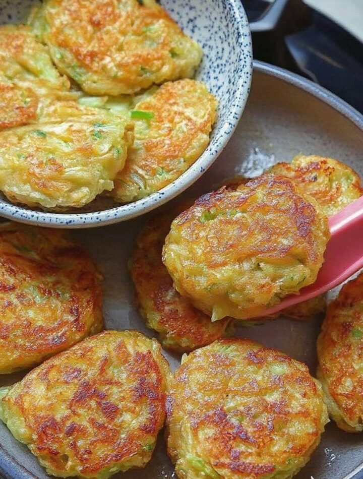 3. Form fritters: Scoop 2–3 tablespoons of the cabbage mixture per fritter and flatten slightly in the skillet.