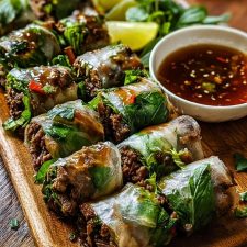 đż THAI BASIL BEEF ROLLS â FRESH THAI FLAVORS IN EVERY BITE If you love bold flavors, fresh herbs, tender beef, and dishes that are easy to share, then Thai Basil Beef Rolls will quickly become one of your favorite recipes. They are vibrant, colorful, and bursting with the signature flavors of Thai cooking: basil, […]