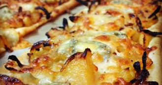 Hojaldre de cebolla, manzana, queso de oveja y roquefort
