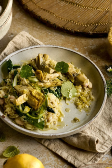 White Bean Orzo With Spinach and Artichokes White Bean Orzo with Spinach and Artichokes is a comforting, Mediterranean-inspired dish that brings together creamy white beans, tender orzo pasta, vibrant spinach, and tangy artichoke hearts in one satisfying skillet. It’s the kind of recipe that feels both nourishing and indulgent—perfect for a cozy weeknight dinner, meal […]