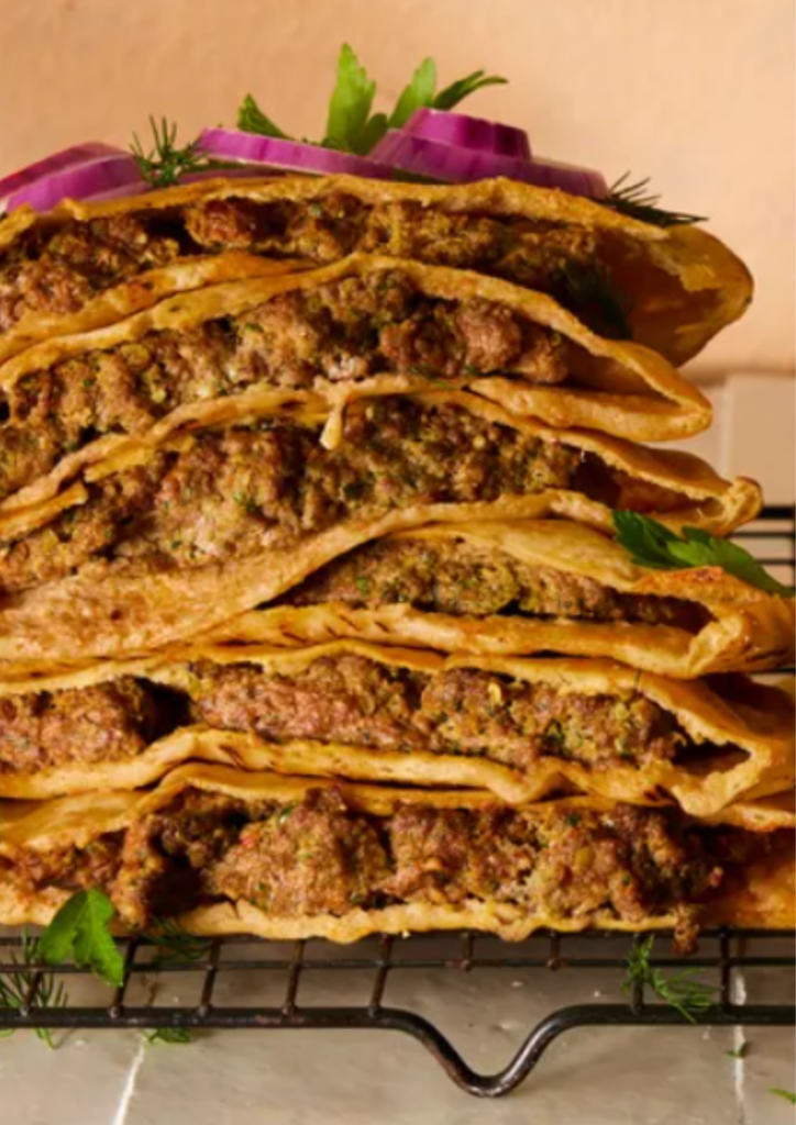Arayes is a beloved street food across the Middle East, especially popular in countries like Lebanon, Syria, Jordan, and Palestine. This delicious dish consists of pita bread stuffed with seasoned minced meat, then grilled, baked, or pan-fried until the bread becomes crispy and golden while the filling stays juicy and flavorful.