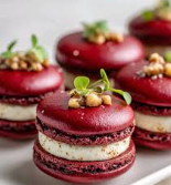 Savory Beet Macarons with Goat Cheese & Walnut Crunch