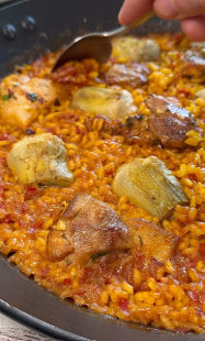 ¡Un arroz brutal! 🍗🥘 Con pollo adobado y alcachofas