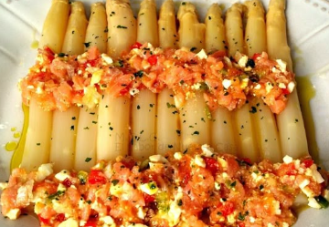 ESPÁRRAGOS BLANCOS CON VINAGRETA DE SALMÓN AHUMADO