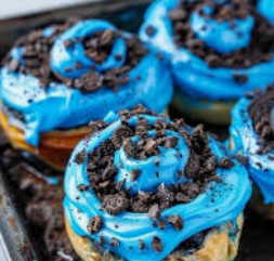 Ultra-Soft Blue Cinnamon Rolls Stuffed with Cookies & Cream Cheese Frosting