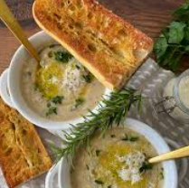 White beans bring a naturally creamy texture without the need for cream. Garlic—slowly sautéed until sweet and mellow—forms the backbone of the flavor, while fresh rosemary adds an earthy, piney aroma that instantly signals comfort. Finished with good olive oil and a squeeze of lemon, this soup is simple, soulful, and endlessly satisfying.