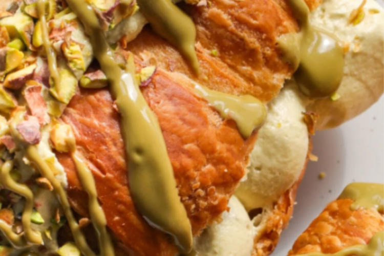 Pistachio croissants are a luxurious pastry inspired by French patisserie traditions, where day-old croissants are transformed into something extraordinary. Instead of wasting leftover croissants, they are filled with a creamy nut-based filling—similar to almond cream—but with the unique, slightly sweet and earthy flavor of pistachios.