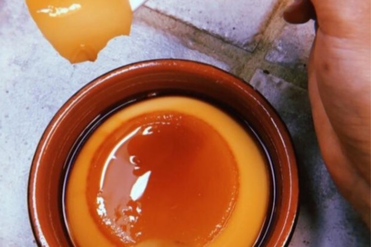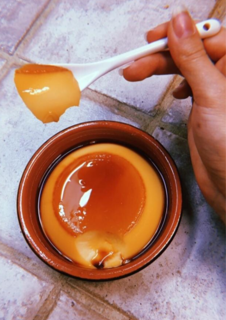 Caramel is the foundation of purin’s flavor. It should be deep amber — slightly bitter but not burnt.