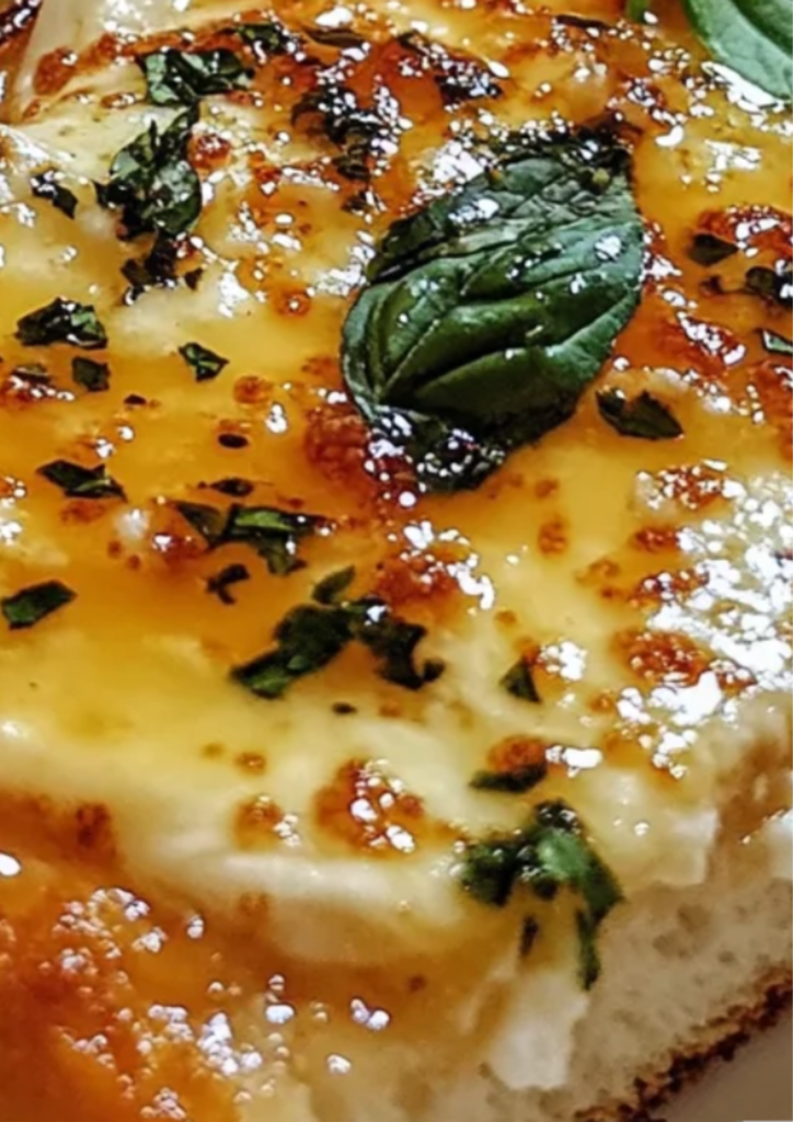 If you love pizza and garlic bread, this recipe brings the best of both worlds together. The base is a crispy, buttery garlic bread, topped with melted cheese and your favorite toppings, then finished with a drizzle of hot honey for a sweet and spicy kick. The contrast of flavors—savory, cheesy, garlicky, and slightly spicy—makes every bite unforgettable.