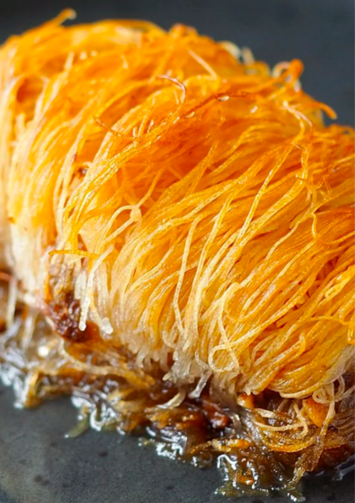 - Crunchy exterior from the crisp kataifi pastry