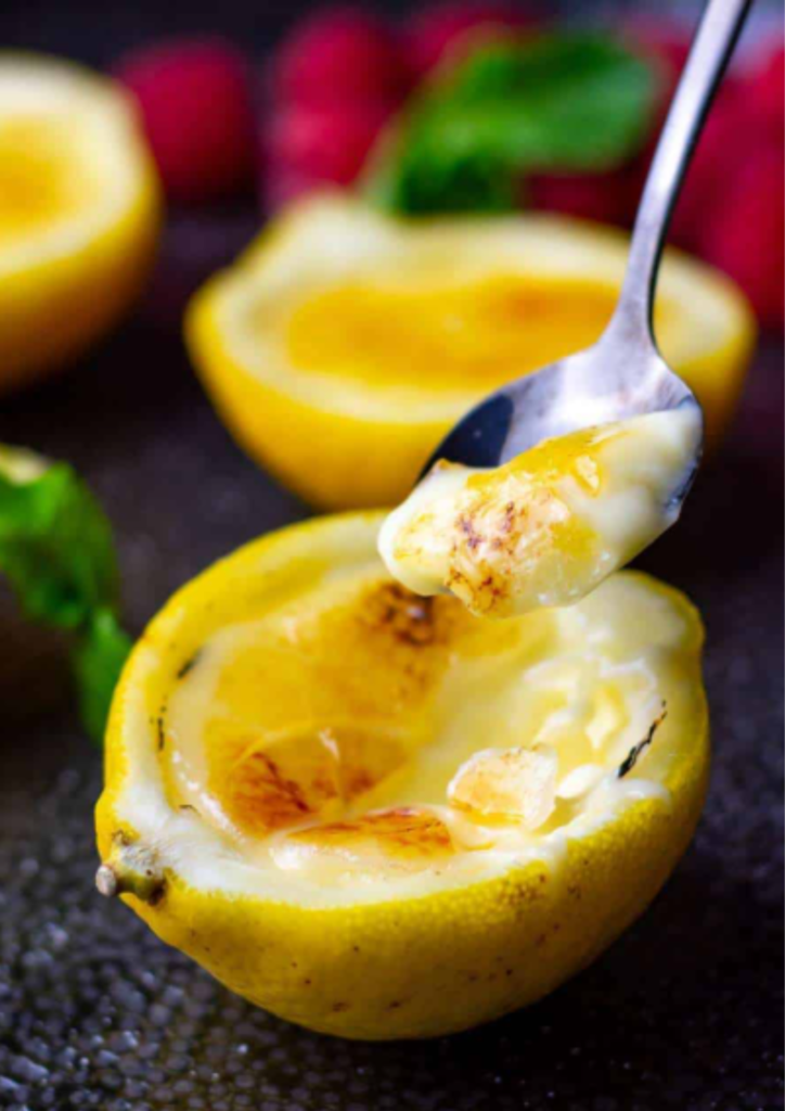 Serve immediately and enjoy the satisfying crack as you break through the top into the creamy lemon base.