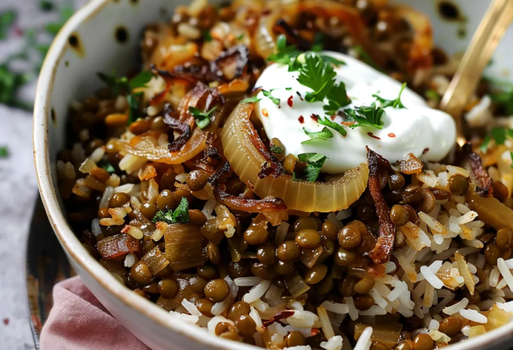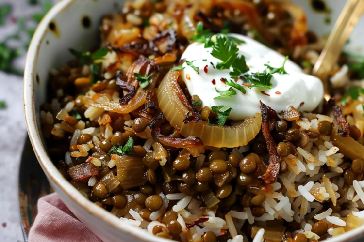 La mujadara est l’un de ces plats ancestraux qui racontent une histoire. Originaire du Liban, de la Syrie, de la Palestine et de la Jordanie, elle est souvent décrite comme un plat de pauvres, mais son goût riche et sa profondeur aromatique en font un véritable trésor culinaire. Composée de lentilles, de riz et d’oignons longuement caramélisés, la mujadara est naturellement végétalienne, économique et extrêmement rassasiante. C’est une recette où la patience est récompensée, surtout lorsqu’il s’agit de réussir les oignons, véritable cœur du plat.