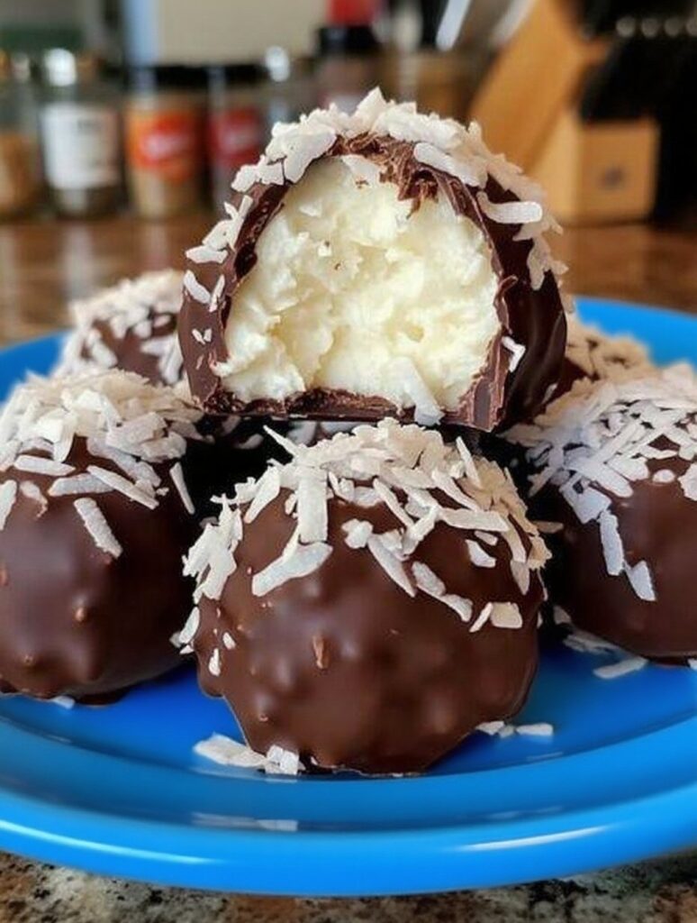 5. Optional chocolate dip: For a richer twist, dip some of the balls in melted chocolate, then roll in coconut again.