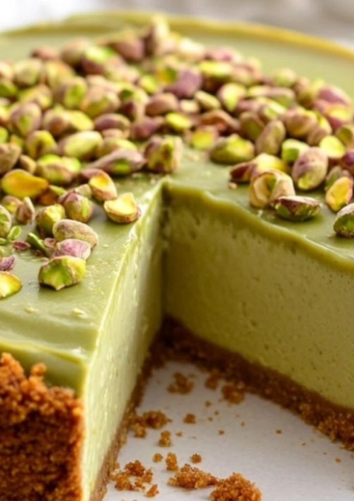 This recipe gives you a silky baked cheesecake with a buttery crust and a glossy pistachio topping that adds both texture and visual appeal. Every bite is creamy, crunchy, and full of flavor.