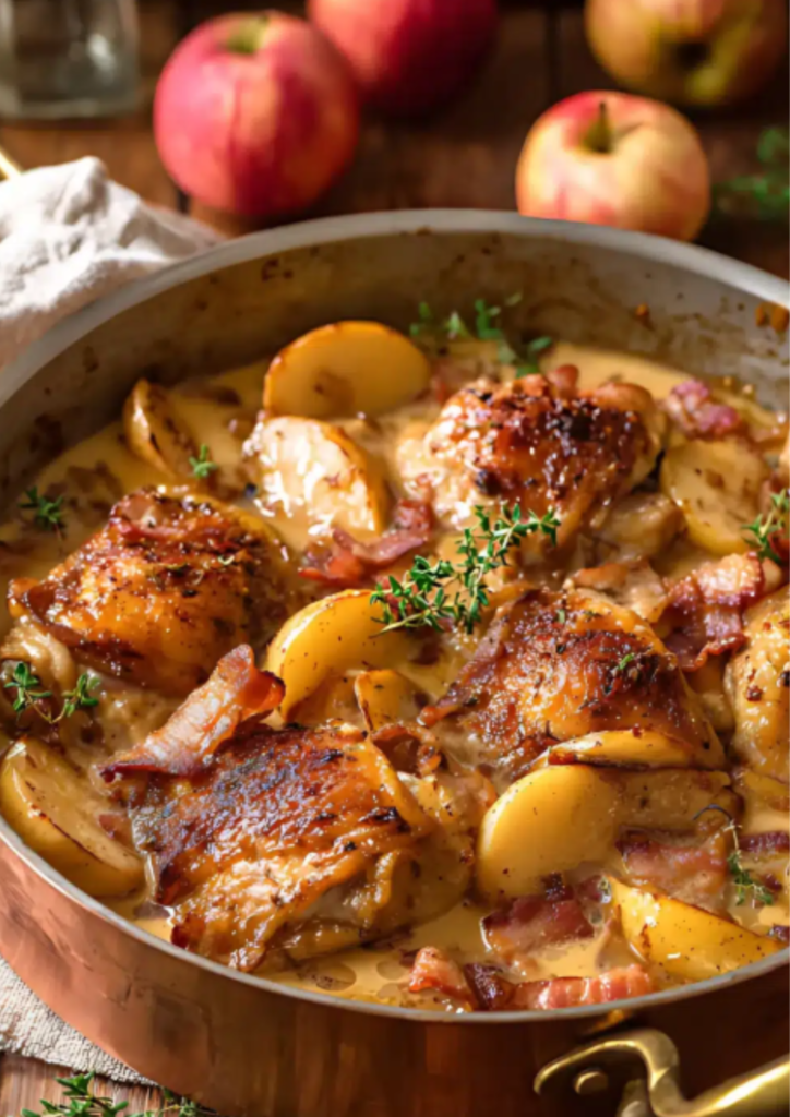 • Poulet au cidre et bacon : Ajoutez des lardons fumés pour une saveur encore plus riche.