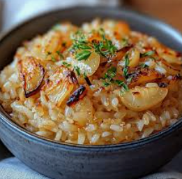 Le riz à l’oignon à la française est un plat simple, parfumé et réconfortant, inspiré des saveurs classiques de la cuisine française. Il rappelle les arômes profonds de la célèbre Soupe à l’oignon, mais revisité sous forme d’un accompagnement généreux ou d’un plat principal végétarien. Avec des oignons doucement caramélisés, un riz fondant et une touche de beurre, ce plat est idéal pour accompagner une viande rôtie, un poulet grillé ou même être dégusté seul avec une salade verte.