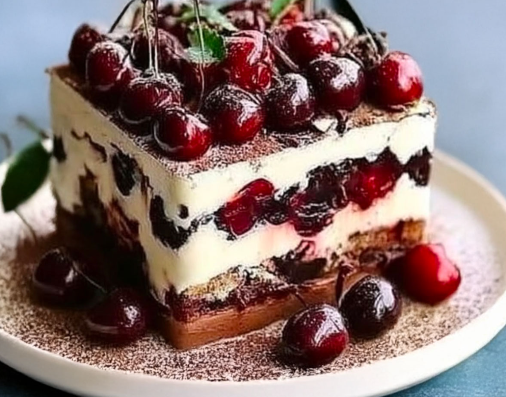 Le Tiramisu Forêt-Noire est bien plus qu’un simple dessert : c’est une rencontre entre deux grandes traditions pâtissières européennes. À la fois fondant, intense, fruité et élégant, il séduira les amateurs de chocolat comme les passionnés de desserts raffinés. Chaque bouchée est une promesse de gourmandise, un voyage entre l’Italie et l’Allemagne, revisité avec créativité et générosité.