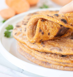 Elles sont souples, légèrement sucrées grâce à la patate douce, et parfaites pour des wraps, tacos, quesadillas végétaliennes ou même comme base de pizza légère.