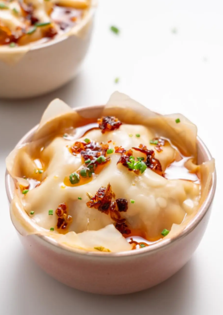 Add chili oil for spice. It complements the dumpling flavors beautifully.